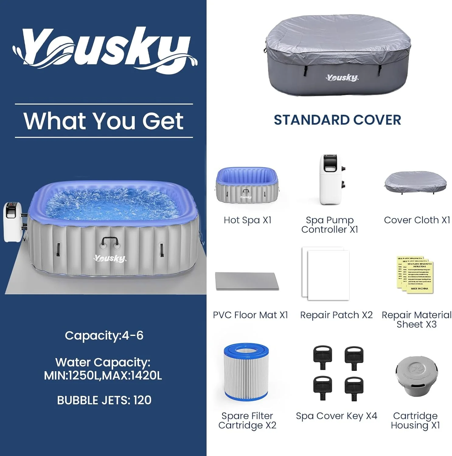 - Портативный и компактный: Благодаря своей надувной природе он не занимает много места и может быть установлен в любом месте. Будь то дома, в отпуске или на курорте, надувной спа Yousky® идеально подходит как для личного, так и для коммерческого использования.
